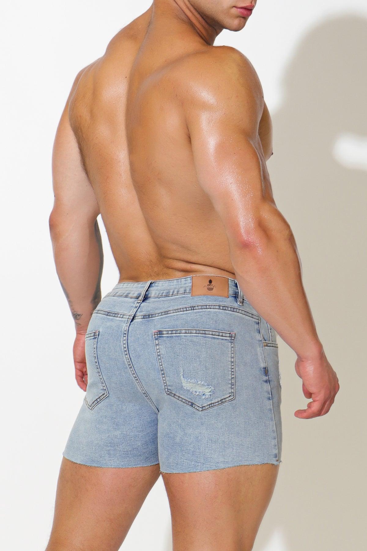 Rockstar Raw Cut 2.5" Denim Short Shorts - Capri Blue - JJ Malibu